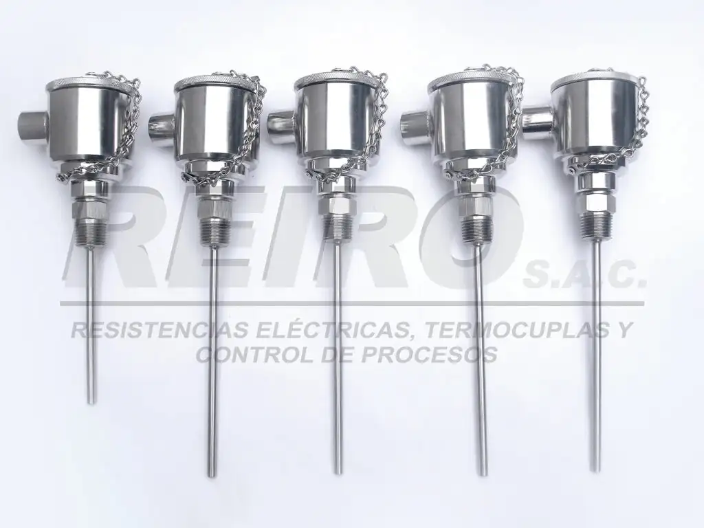 Este conjunto RTD está disponible con un cabezal de conexión acero inoxidable o plástico que tiene una entrada de cable M20 x 1,5. El sensor puede terminarse con un bloque de terminales de cerámica, un transmisor de 4 a 20 mA o suministrarse con colas.